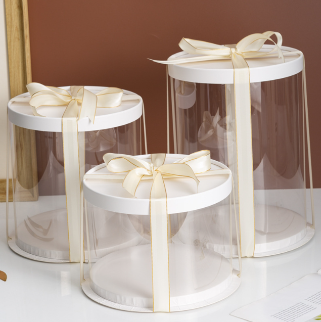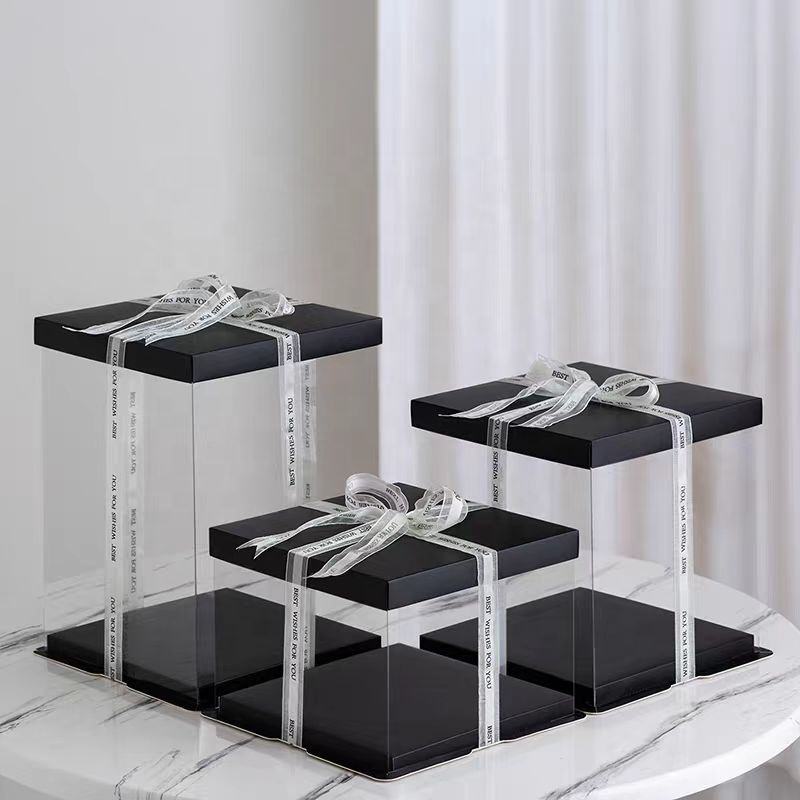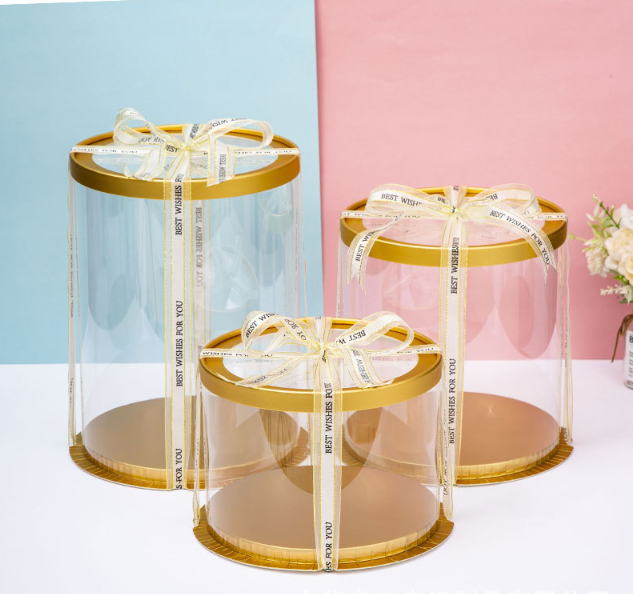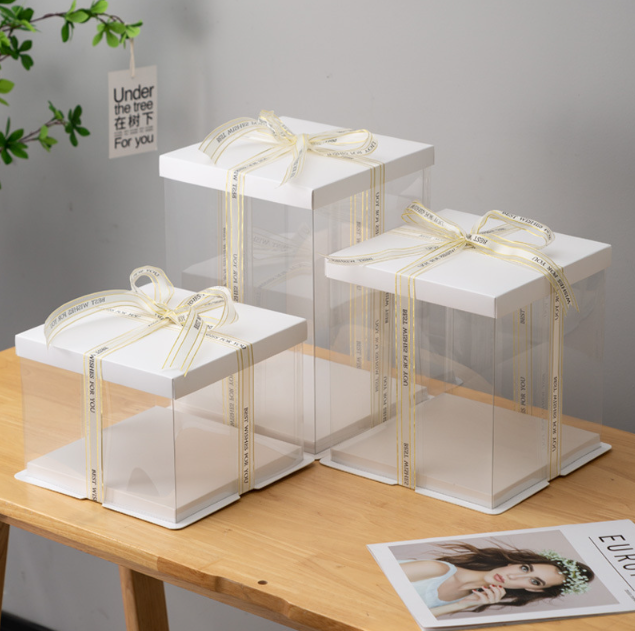 All of our transparent cake box the shape available round transparent box and square transparent box.And provide custom required size and logo to help you promote your brand,use our transparent cake container to display your cake from the moment you get it.