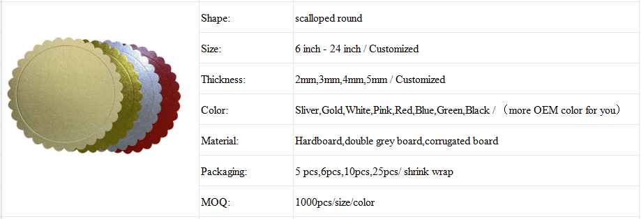 Coated Cake boards are perfect for supporting tiered cakes or using under cakes. Bleached one side with a grease proof finish. The edges are smooth and don’t have any nicks in them. The top has a high finish and the bottom is craft. All Cake Boards are available in sizes starting at 6 inches to 16 inches, packed in 6, 12, 25 count and Case Size.
