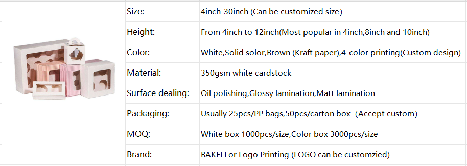 The best cupcake boxes available in mixed or custom sizes, BAKELI Bakery packaging as the manufacturer chooses food grade plain white cardstock to make these products based on their thickness,weight and eco-friendliness.You can’t go wrong with ordering a white cake box wholesale that goes well with any bakery product.