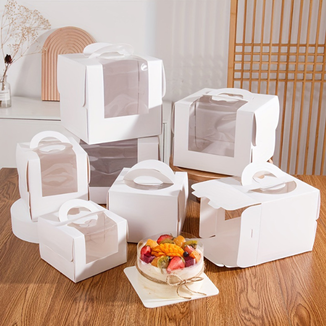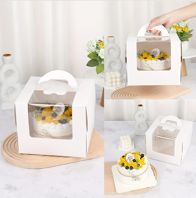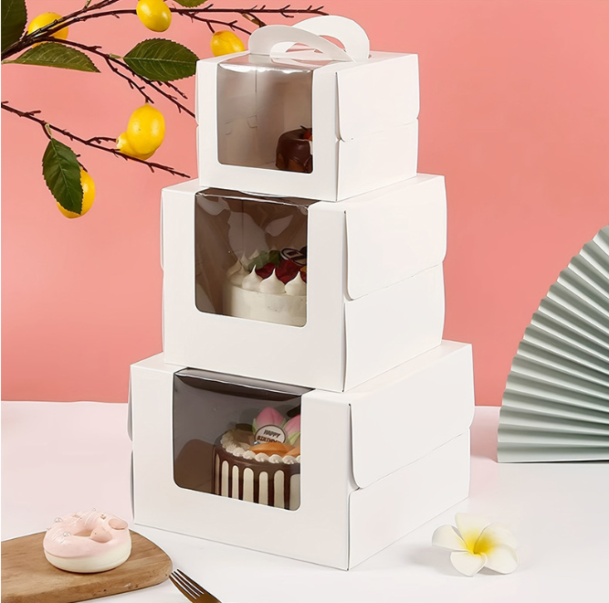 Customised 8-inch/10-inch white cardboard cake boxes with a window, made from food-grade material