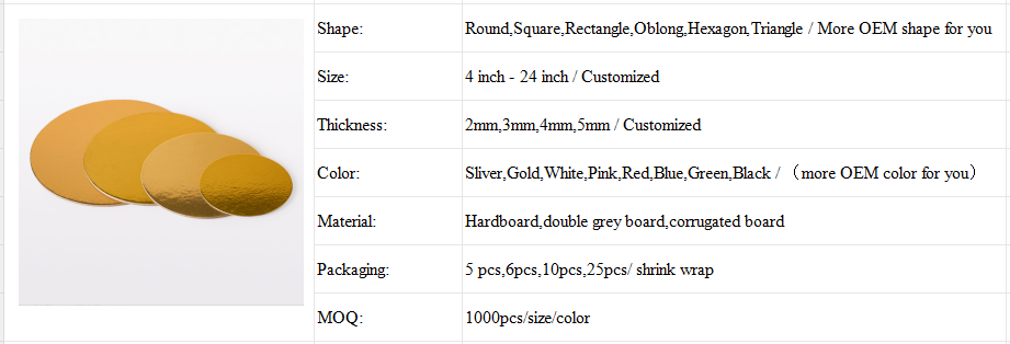 Not only do these golden cake boards enhance the display of your baked art, but they also provide support when decorating or transporting cakes. When you place desserts on these glod cake base boards, bakers can more easily pick them up and place them on a cake stand for decoration. These cake boards also make it easier for customers to remove cakes from the box and share with family and friends at gatherings.