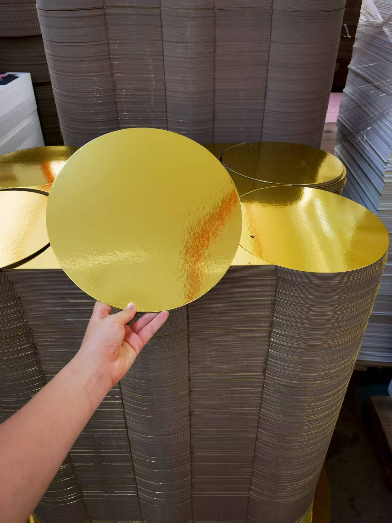 Not only do these golden cake boards enhance the display of your baked art, but they also provide support when decorating or transporting cakes. When you place desserts on these glod cake base boards, bakers can more easily pick them up and place them on a cake stand for decoration. These cake boards also make it easier for customers to remove cakes from the box and share with family and friends at gatherings.