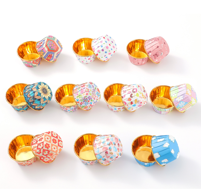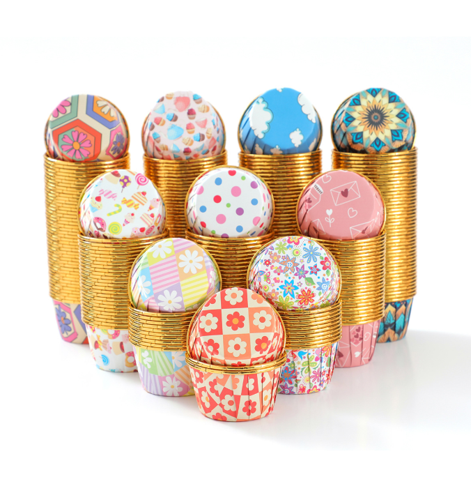 Hot selling Bohemian style gold-lined rolled-edge square cake cups/mummy cups