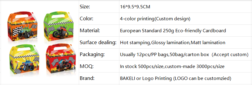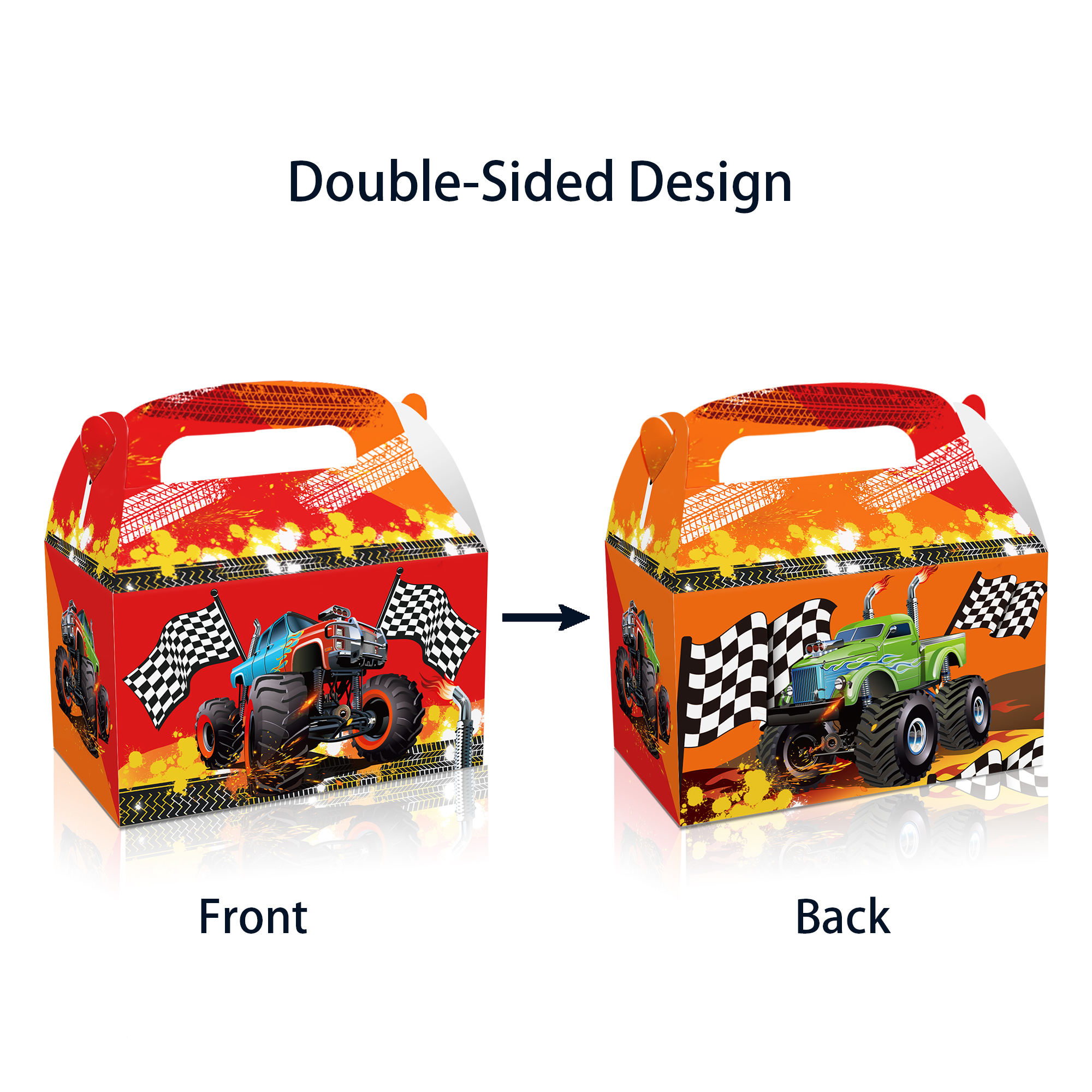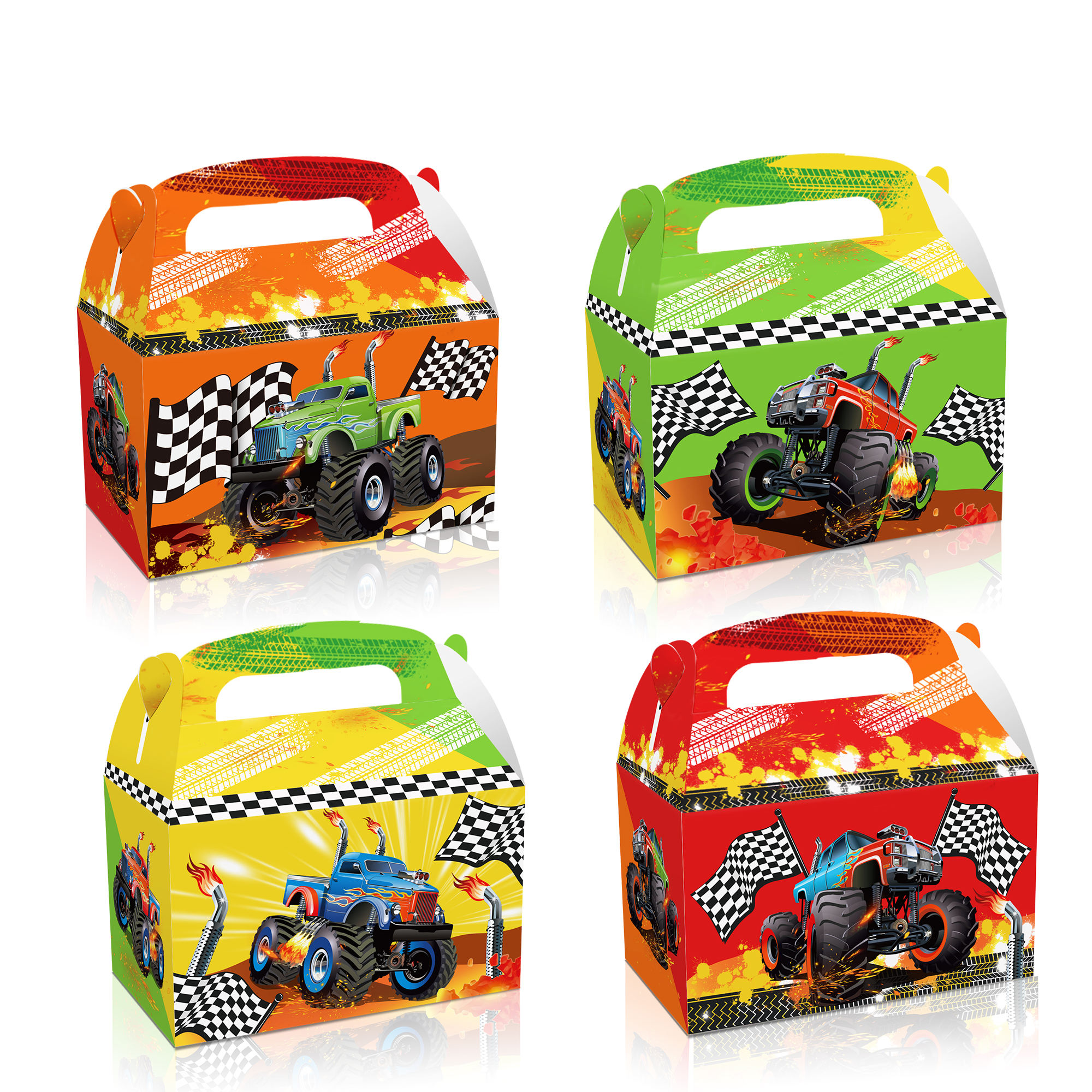 Monster Truck Candy Treat Boxes Double Side Design Paper Gift Cake Goodies Box for Kids Birthday Racing Party Supplies