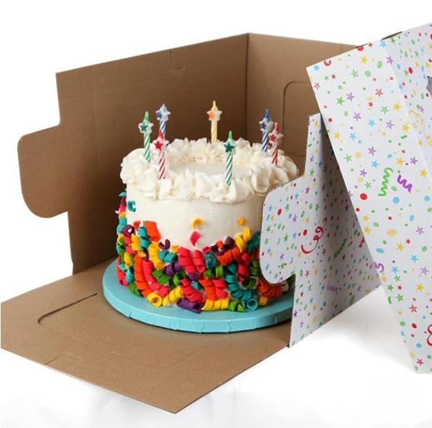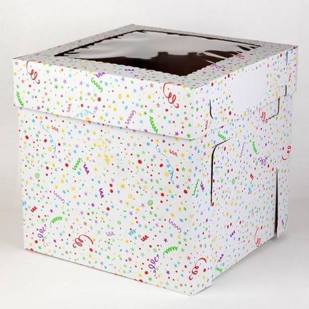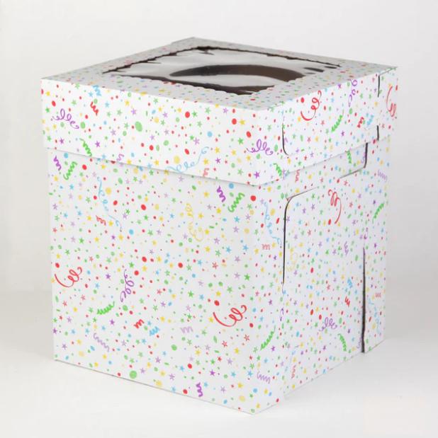 Now you can transfer your two tiered or 3D cakes safely with this Tall Window Cake Box. The window allows you to see your beautiful cake creations, while the added height keeps your creation safe and sound during transportation.  The convenient side opening of the box makes moving the cake in and out of the box easy.